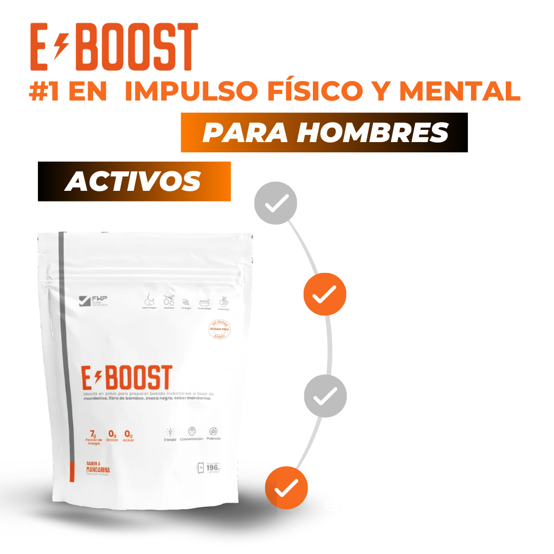 Eboost activa la energía al máximo, eliminando el cansancio y elevando el rendimiento físico diario. En la intimidad, impulsa el desempeño sexual con mayor potencia, resistencia y control, para hombres que quieren rendir fuerte y sin excusas.